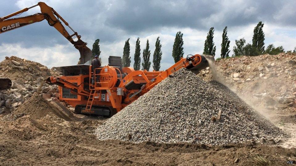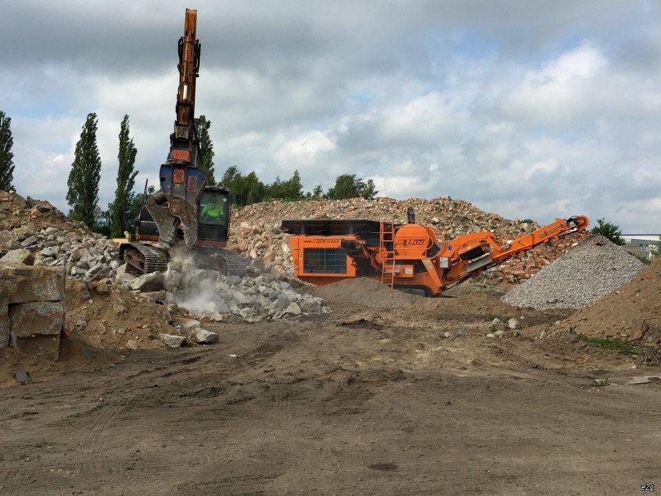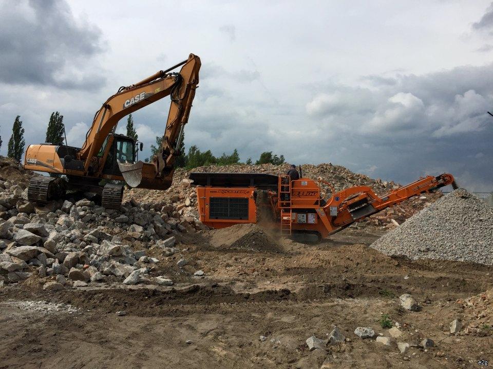 Kruszarka będzie przerabiać materiał pozyskany z wyburzeń i przygotowany wstępnie przez obrotowe szczeki kruszące Trevi Benne FR 20 RD, które dostarczyliśmy klientowi w ubiegłym roku.